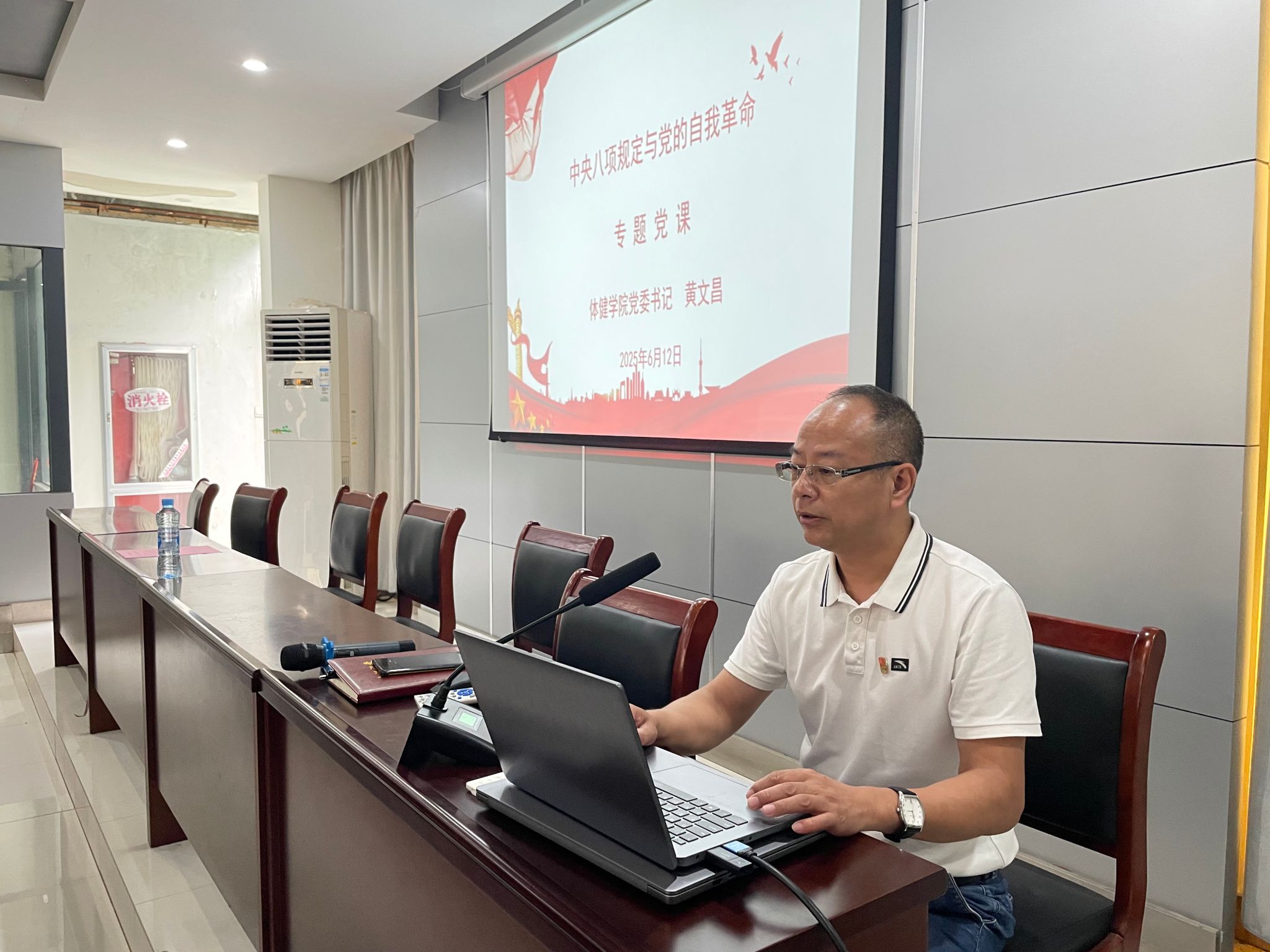 为深入贯彻中央八项规定精神学习教育,6月12日,公司党委书记黄文昌为全院教工党员讲授了“中央八项规定与党的自我革命”专题党课。