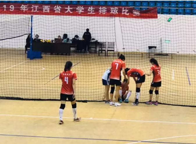 赛中,女排丙组(高水平)队员廖丽诚不慎受伤,但仍坚持带伤上场。惜败对手,获得季军。顽强战斗,勇敢拼搏,这就是花椒女排的精神。