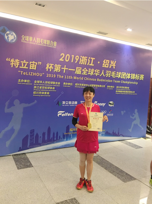 近期,在中国绍兴举行的第十一届全球华人杯羽毛球团体锦标赛中,公司教师肖琪及所在的代表队获得(50岁组)女子团体冠军。